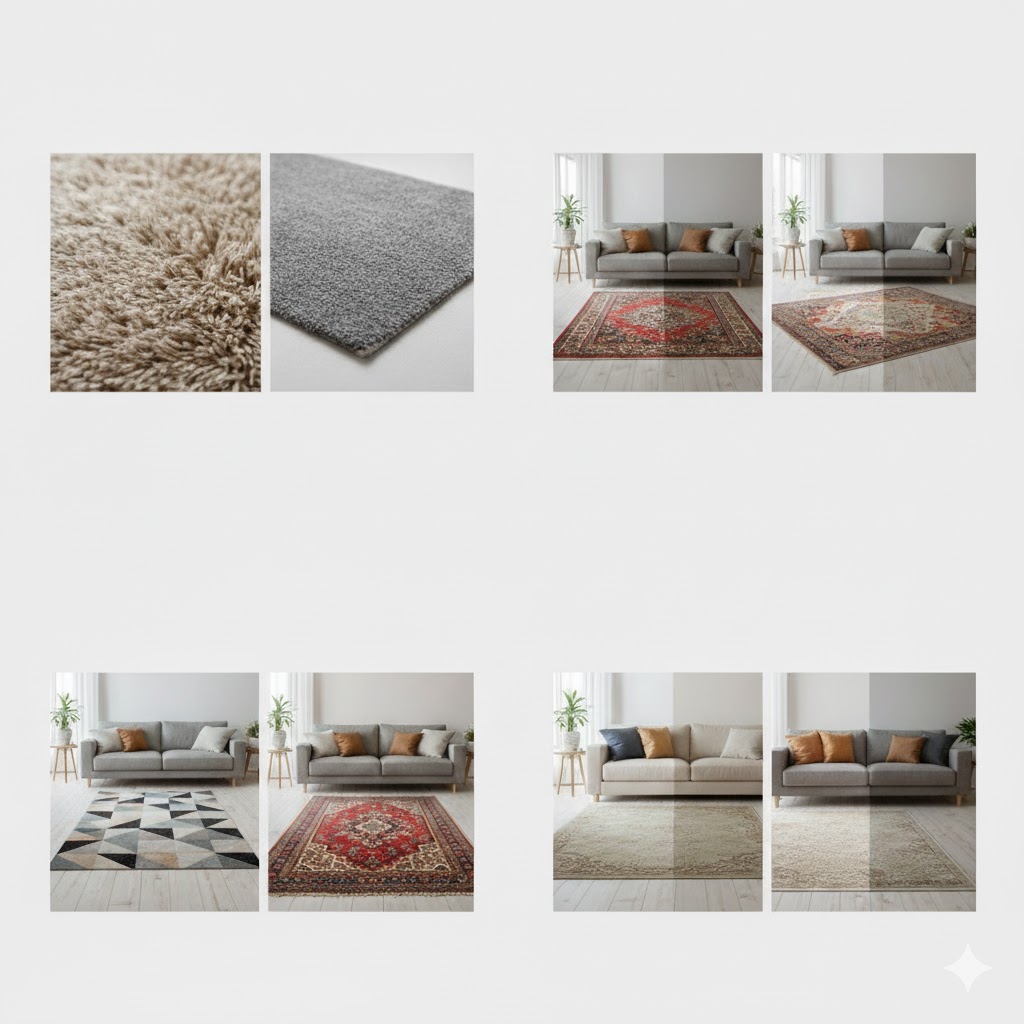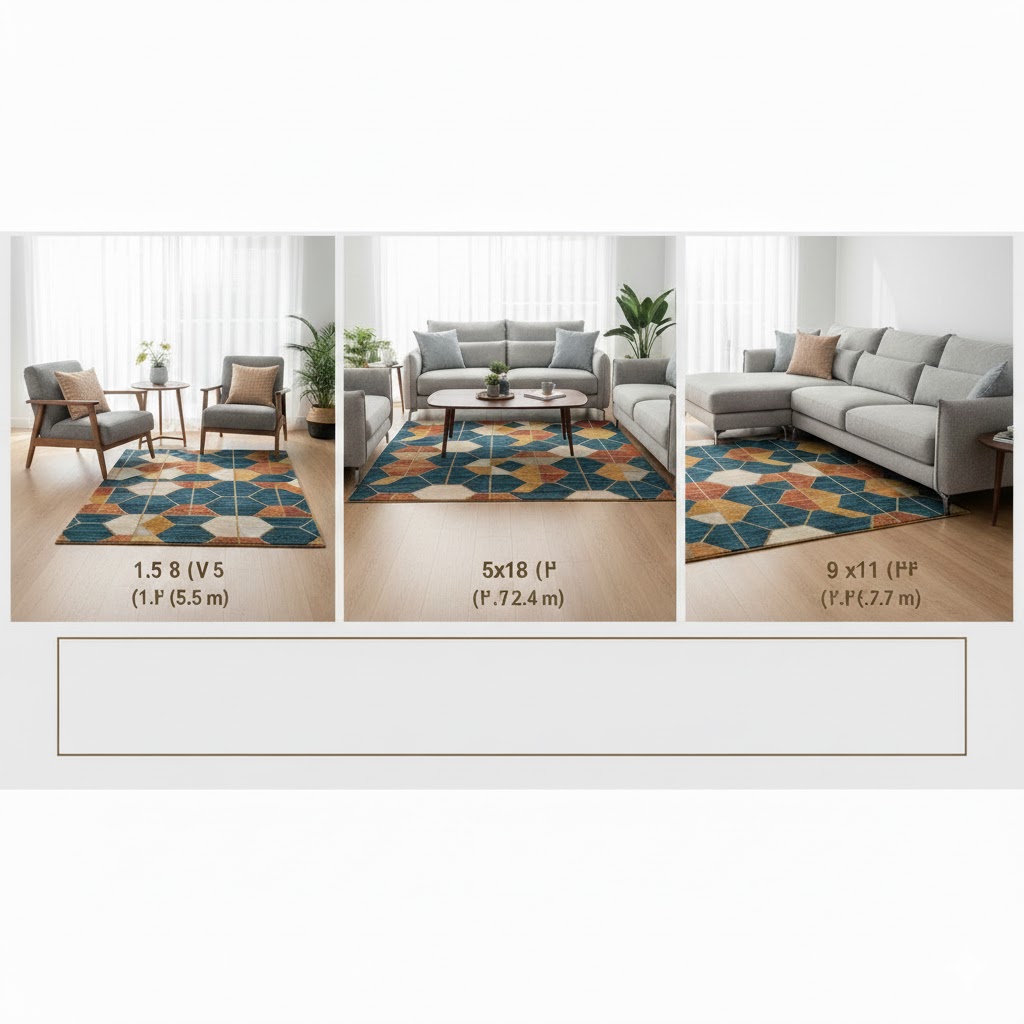 ابعاد فرش باید با ابعاد سالن پذیرایی شما متناسب باشد. یک فرش 12 متری در یک سالن کوچک ممکن است فضا را دلگیر کند، در حالی که یک فرش 6 متری در یک سالن بزرگ، گم میشود.
